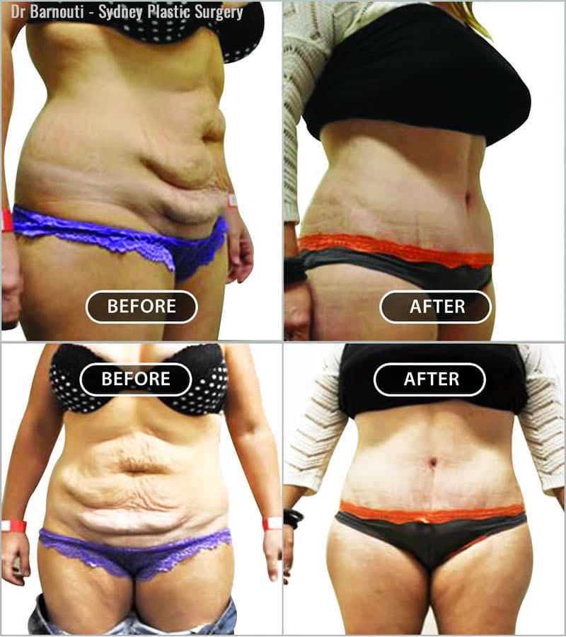 Before/after photos of abdominoplasty patients from our Sydney Clinics