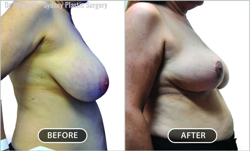 This gallery features patient results from breast lift and breast reduction surgeries performed by Dr Barnouti at our Sydney clinics. Each procedure is tailored to improve breast shape, size, and position, whether to address sagging, discomfort, or both. The images highlight the natural-looking outcomes that can be achieved through individualised surgical planning.